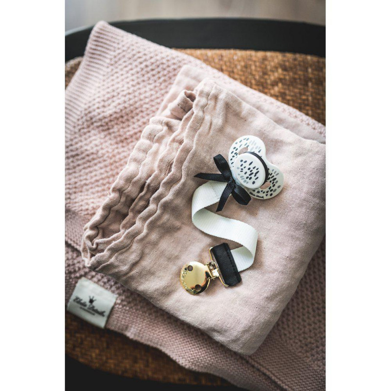 Suttekæden har fine detaljer og silikone ring til at sætte sutten fast i.