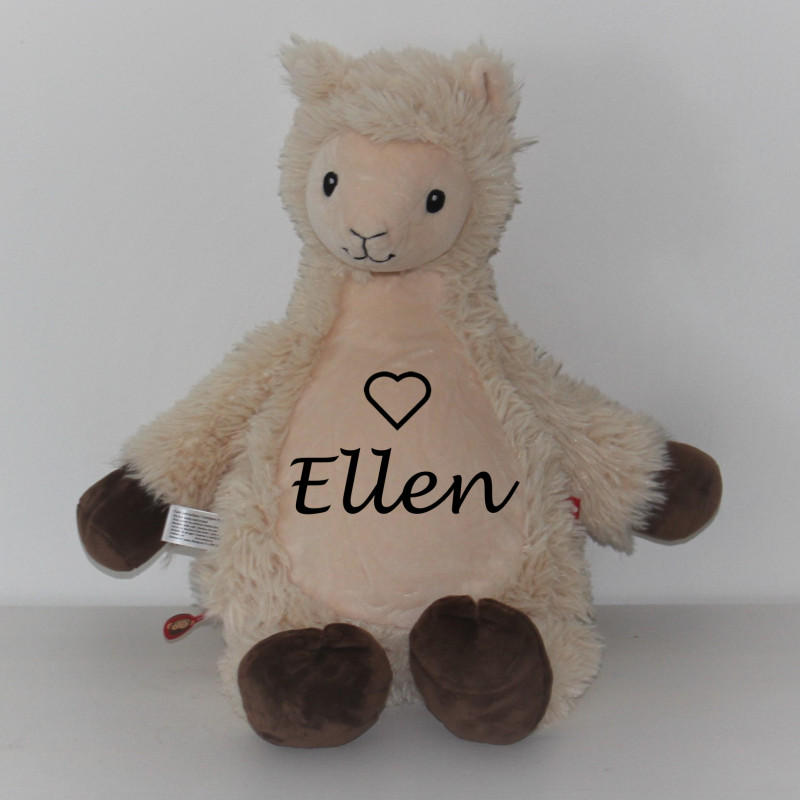 Den søde og dejligt bløde elefant bamse kan broderes med op til 3 linjer tekst.