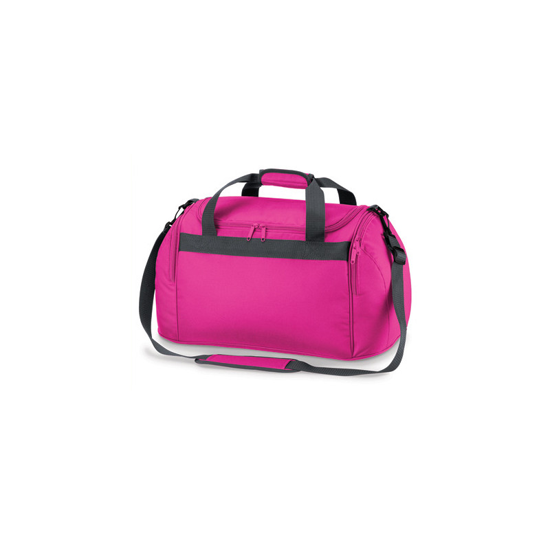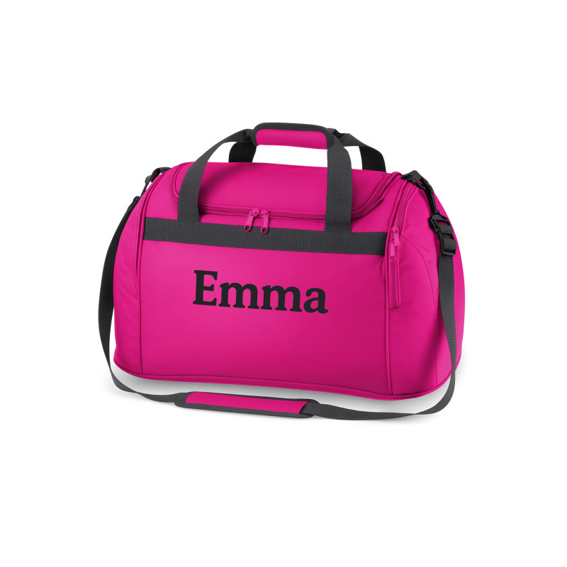 Den pink sportstaske er ideel til gymnastik, svømning, sport eller en weekendtur. Den kan også bruges som rejsetaske – med navn på siden er den både personlig og nem at genkende.