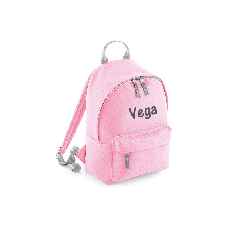 Lyserød rygsæk til børnehaven med navn broderet på.