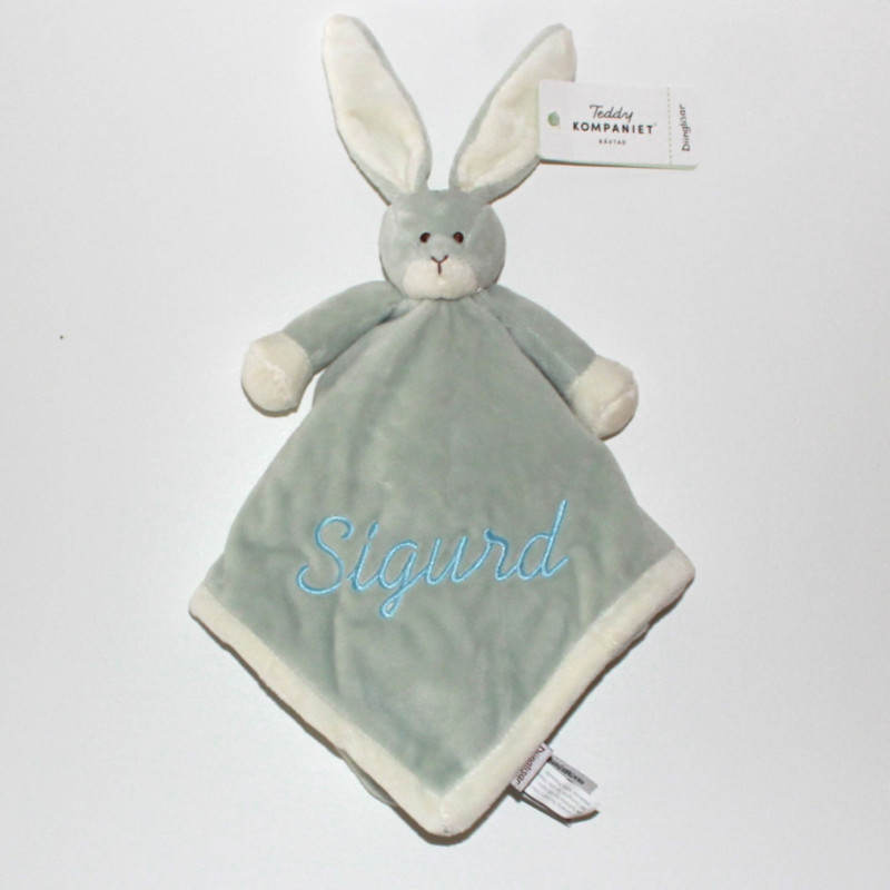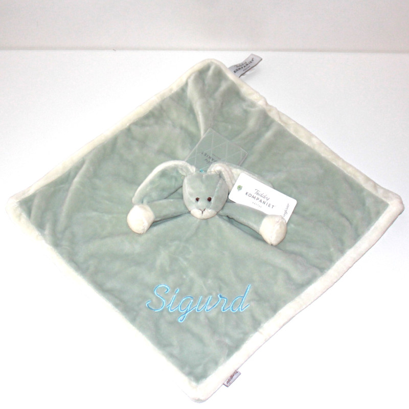 Teddykompaniet støvet grøn kanin nusseklud med navn på.